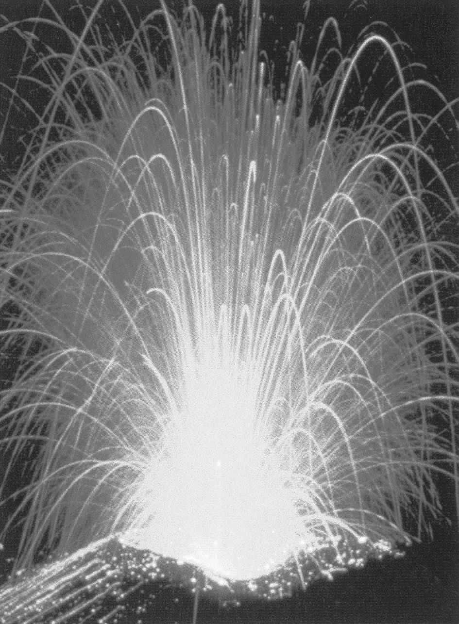 显然,我们被火山喷发的冲力推动着在继续上升,木筏下面是沸腾的热水,热水下面是包裹着岩石的岩浆,当这些岩浆到达火山口的时候,就会喷向四面八方。无疑,我们现在正在火山管中前进。