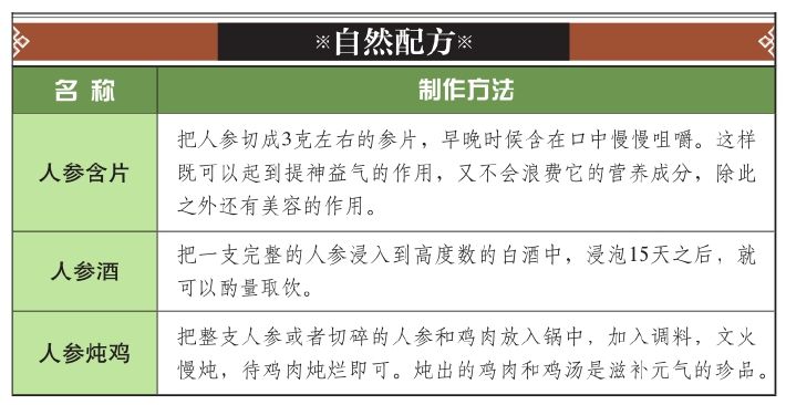 人参是补气良药,能够补中益气、安神强心,治疗体虚、脉弱、神经衰弱等病症。同时,人参中富含的人参皂苷和人参多糖能够提高血液中红细胞的载氧能力,促进人体对维生素的摄入和吸收。所以,人参一直有“长寿之源”的美称。