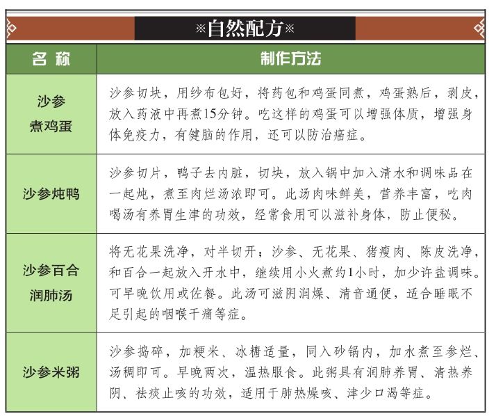 沙参有养阴清肺、益胃生津的作用,可以治疗干咳少痰、咽干口渴等症,还有一定的降低体温、镇痛的作用。