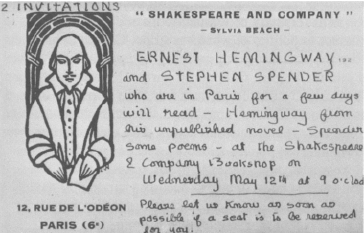 16﹥ 海明威与史蒂芬·斯班德双人朗读会的邀请函