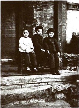 父亲和亲人合影,左起大姑父韩耀辉、伯父赵夷年、叔叔赵延年(1977年11月)