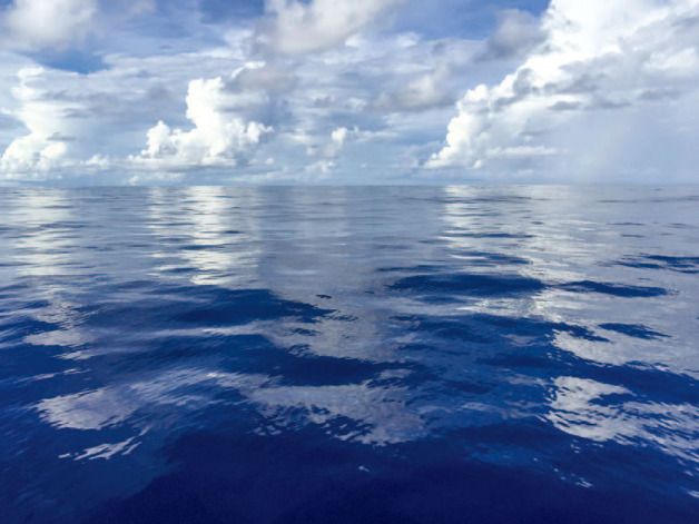 那天下了货船,接驳船带我们穿过潟湖上岸,我觉得一切美得不真实,觉得自己何德何能,可以见到这样的美景。两个岛之间,一线长的潟湖,中间稍微高一点的石头上长出几棵椰子树,像是凭空悬在地平线上。潟湖的水清澈见底,手伸下去,还留着日光的温度,很舒服,几个人站在潟湖边缘甩钓,你知道,潟湖边缘就是几千米深的大洋。接驳船越往岸边走,水越平静,到最后平静得像面镜子。天色渐暗,天地间剩下一点幽暗的蓝色,岸上有火光,小孩子们扎堆站在岸边等船靠岸。那样的场景,有点像进入桃花源境一般。