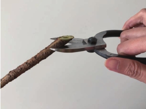 步骤一 剪一枝连翘,长度大约是花器口直径的2倍到2.5倍。太高会显得作品头重脚轻,有失衡感。