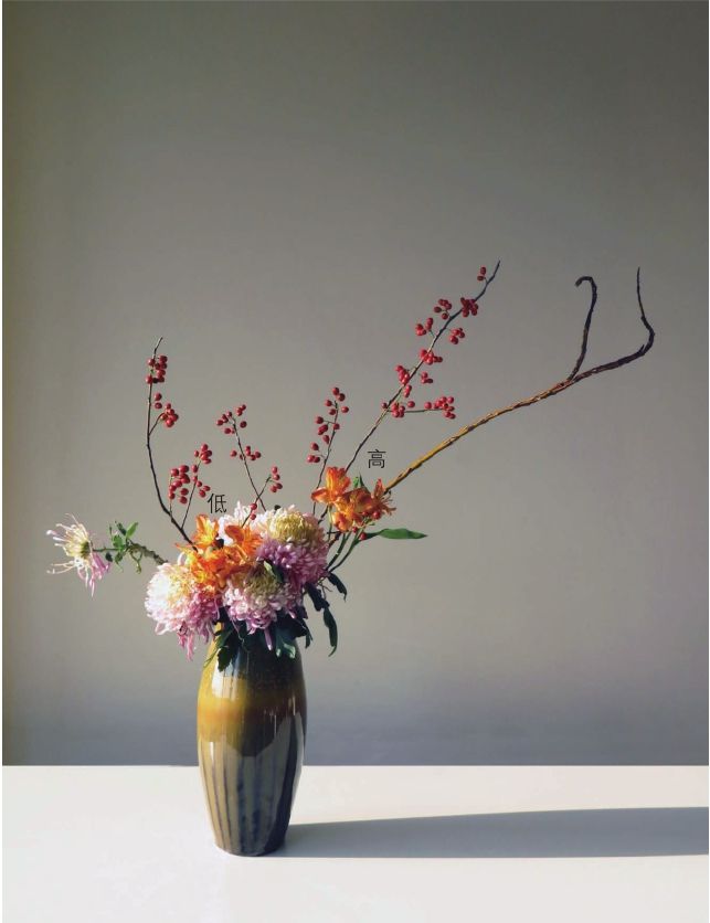 瓶花艺术是一种大自然的造型艺术,但绝不是随心所欲、芜蔓无修单纯地推崇自由,基本原则是要有的。如何将材料在无任何人为加工的情况下,插置出作品的形式之美,比例、高低、变化与统一、动态与平衡、韵律与节奏,唯有熟练把握这些基本原则,才能真正地不拘格式地表达出作者的意图与天趣。