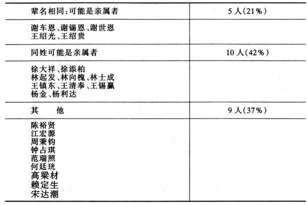 在绅士鼓励下的超越村庄和宗族的乡勇联盟中,血缘组织又怎么样呢?即使在这里,血缘组织仍旧一样重要。东平公社的24名领袖中有大约60%的人是同姓。这当然并不肯定表明亲属关系,但是他们相互间的密切关系,以及谢王两家的明显关系——同辈的人名有一字相同[26],表明广东省乡勇联盟之所以会取得成功,正是因为它们是聚集在早已存在的宗族的“旗帜”之下。特殊的团练组织是否曾以多族联盟这种早期形式存在过呢?那是可能的。但是,真正大规模的团练联盟,比如升平社学,是超越了宗族联盟的。绅士们使许多纵向的血缘体联合起来,这样,一个宗族内的绅士与佃户,同另一族的绅士与佃户之间的潜在的横向纽带,突然间联系起来或者是加强了。某一村的某一农民发现,他与另一个镇上的穷苦农民有着共同的经济或社会利益。如果没有团练运动,各个村子间互相的仇恨阻碍人们觉察这一点,这有利于领袖们控制一个宗族。[27]