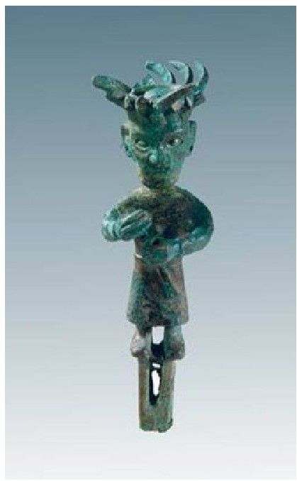 王鲁湘:这个小青铜人的姿势和造型很奇特啊,特别是头上戴的那个东西。