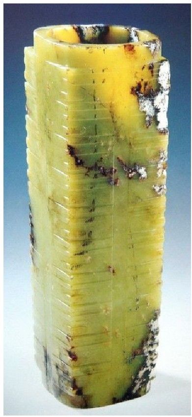 随着金沙遗址被一层层地剥开,考古工地上发现了一个奇怪的东西,这是一个柱状的物体。工作人员除去上面的泥土后,在场的人都惊呆了——竟然是一个青绿色的玉琮!