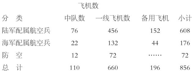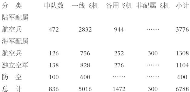 盟国航空兵部队的战时编制,按专业分类如下表: