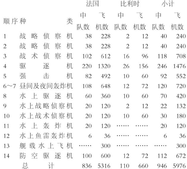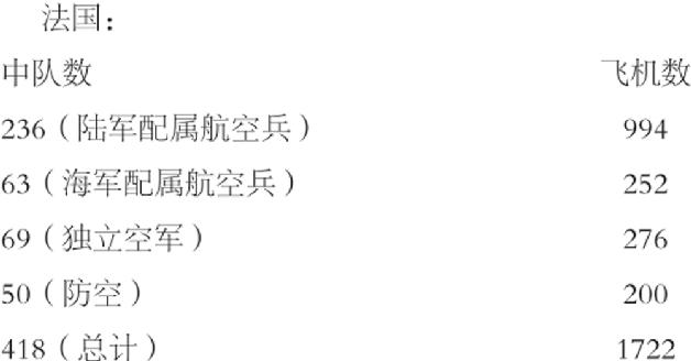 法国航空兵部队在全部动员后的兵力如下: