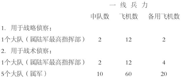 在动员期之初,设想有5个军、2个摩托化师和2个骑兵师,航空兵部队的编制如下: