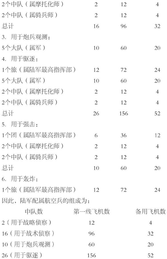 2.用于军、摩托化师和骑兵师的航空兵的分配和相应的法国部队相同。