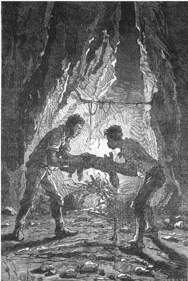 篝火又生起来了。负责烹调的是纳布和潘克洛夫,他们俩一个是黑人,一个是水手,对于烹调都驾轻就熟。刺鼠肉很快就烤好了,大家美美地饱餐了一顿。