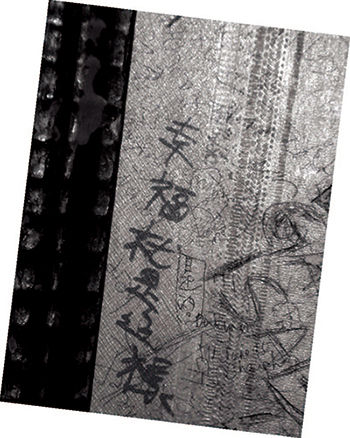 这时候,看到沙发边的墙壁上,老旧的壁纸上,客人层层叠叠的涂鸦里,浮起一行繁体字:幸福就是这样。