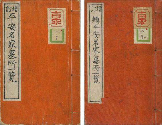 (一)、《增订平安名家墓所一览》(并《续》,一函二册),山本临乘编,明治四十三年(1910)初版印刷发行,大正十一年(1922)再版发行。馆藏者为山本氏所赠。
