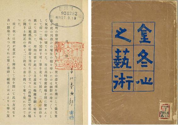 我校正《品梅记》时,他去三宅八幡宫[8]拜谒。校正毕,他又来了一趟。随后即决定着手冬心一稿的出版,高高兴兴回去了。但是我就没那么兴奋,怎么想怎么看都有无耻之嫌。我虽极嗜中国艺术,但提到研究,也不过是在文学研究之余略有涉及而已,是实实在在的门外汉。我在本专业中国文学方面都乳臭未干,若凭副业问世,真是非常寂寞的感觉。由之去罢!毕竟我的事业也都为业余爱好,同以业余爱好出版此稿,本身也是一种业余爱好。就与汇文堂的业余爱好共鸣罢。